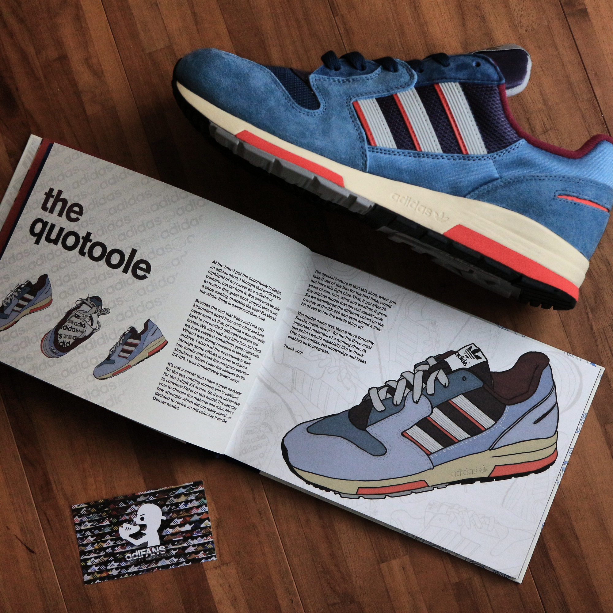 ★ 這回adidas originals團隊特別委託Peter O'Toole透過繪畫的方式, 手繪了Quote數百雙蒐藏當中的47款鞋做為介紹,包含了稀有的 Adria(1982), Aries(1986), Bristol(1988), Jupiter(1988)...等,完成了一本名為"Quote's Archive"(quote的檔案)的印刷蒐藏冊,限量發售1000本, 並於發售的同時. 特別另外販售一款由Quote與Peter O'Toole共同參與設計的ZX 420 "Quotoole"限定版(以兩人的姓名作為組合命名), 同樣全球僅發售1000雙, 相當稀有~
