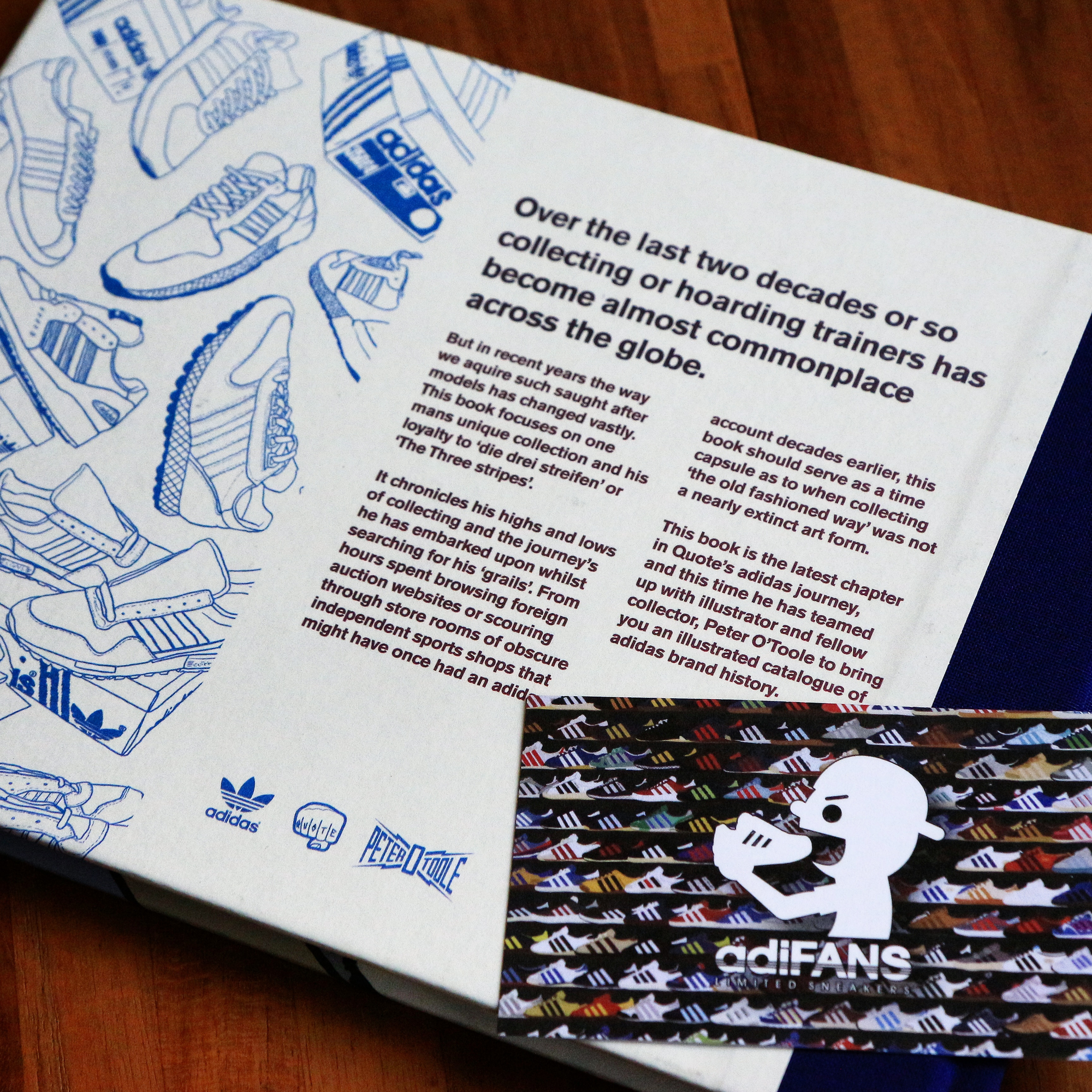 繼由adidas originals官方找來德國adidas三葉草蒐藏家Quote與英國插畫藝術家Peter O'Toole一起合作完成的繪本. 全球限量1000本. 內容蒐藏了Quote先生驚人的vintage個人蒐藏 .  幾乎都是70's~90年代初期的鞋款,由Quote先生詳細說明該鞋款的故事與生產背景資料...等.再交由Peter先生運用個人的藝術風格繪製完成.  內容之精采.讓身為adidas蒐藏家的草爸也不禁為之動容...實在太棒拉!!! 推薦給每一位喜愛adidas的藍血人們.絕對是此生務必要納入蒐藏的一本重要書籍.