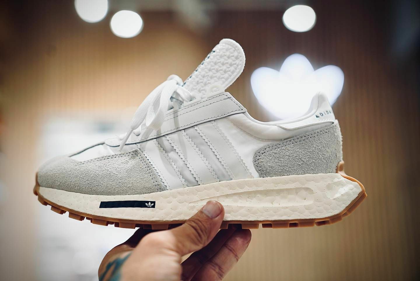 ★ adidas RETROPY E5 白灰配色鞋款屬於adidas高階定點少量配貨的配色,成功融合了「數款」歷史上最經典跑鞋的影子在其中,SL、Marathon、Formula、Racing…,在我眼中是極度成功「非常adidas」的設計,真心覺得很棒的鞋款!鞋身刻意選用加厚的反毛麂皮(高級版本,跟外頭賣的人造纖維仿皮革質感差很多),全白鞋身加上刻意仿舊的米色Boost大底,搭配誇張有型的硫化生膠色下底,整個就是草爸心中的「天菜」啊!不囉嗦了各位~真的要來一雙,它雖然不是什麼天價鞋款,但瞬間進入草爸的Top of 2022名單之中!!!