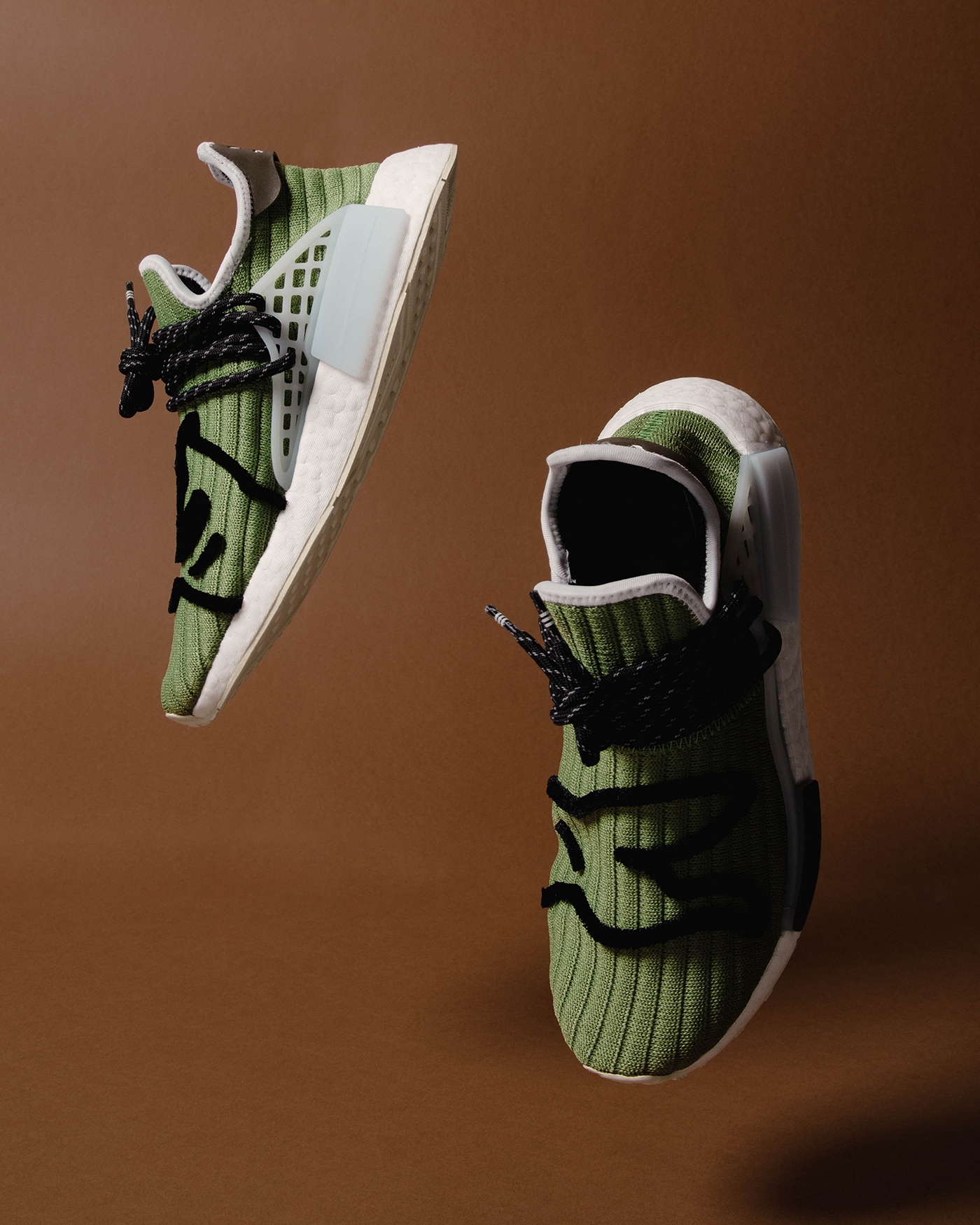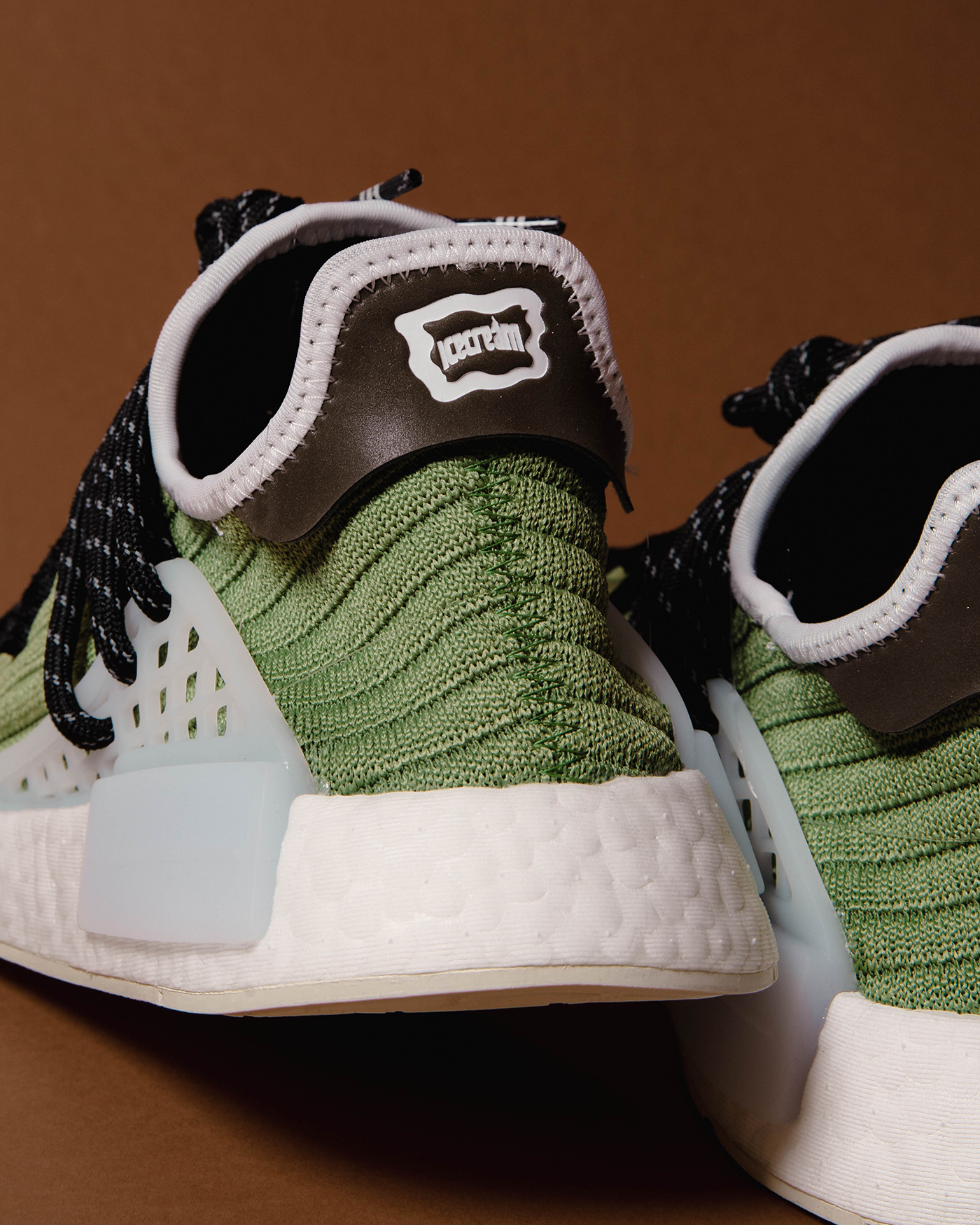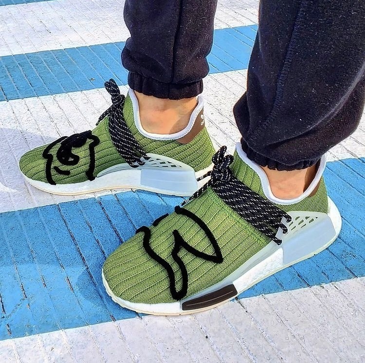 ★ adidas NMD Hu 作為 adidas originals 和 Pharrell Williams 獨家的合作鞋款,Pharrell Williams 本次將他旗下品牌 Billionaire Boys Club 帶到鞋款設計中以完成這三方聯乘。新推出的「Running Dog」款式採用水洗橄欖綠的標誌性 Primeknit 鞋面,並在腳踝處飾以白色滾邊、兩側設計冰藍色半透明籠狀細節、搭載白色 Boost 緩震中底和米色外底,整體色彩豐富但柔和清爽。此外,除了鞋跟處的 adidas 標誌之外,Billionaire Boys Club 經典「跑狗」黑色刺繡亦貫穿雙腳鞋面,立體的線條將動態感呈現無遺。