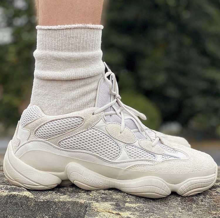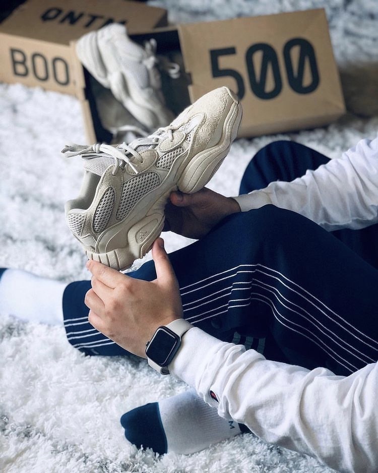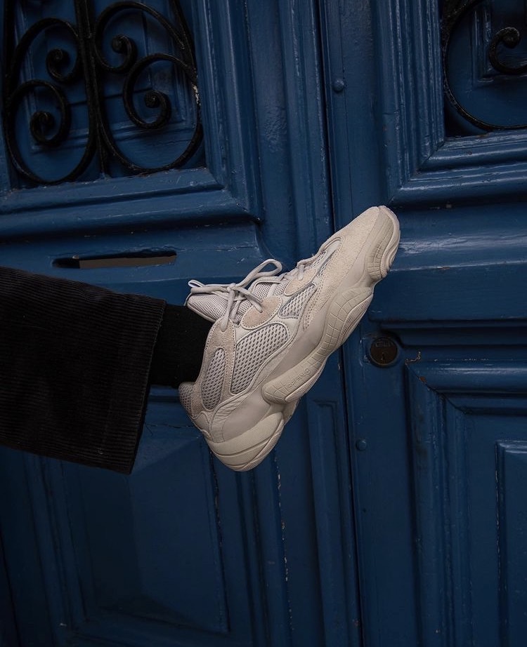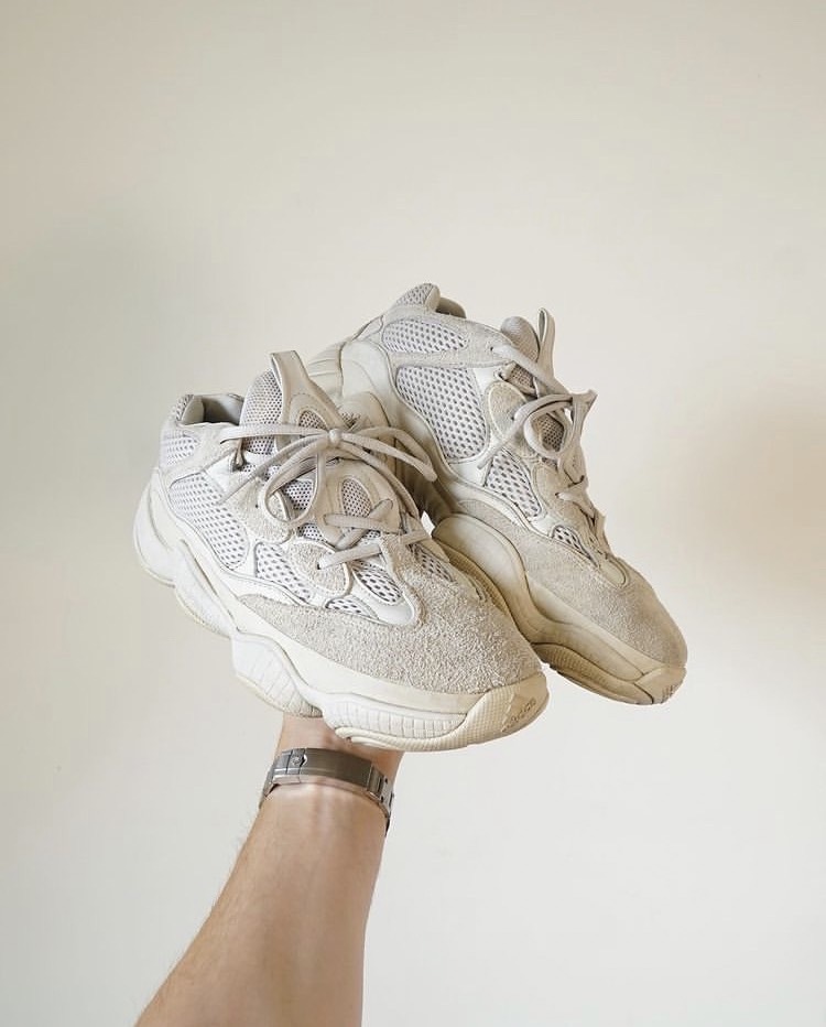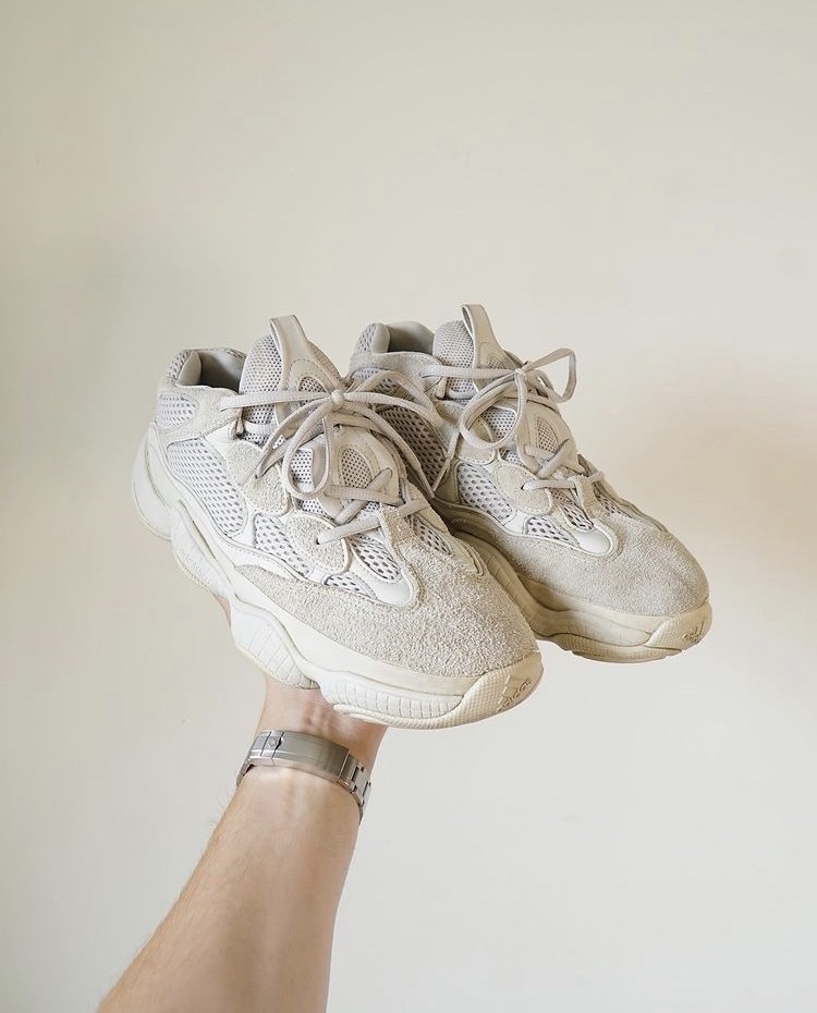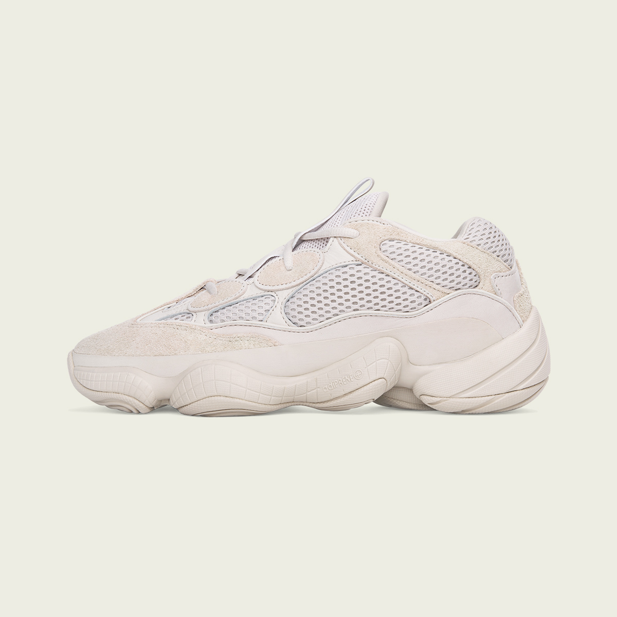 YEEZY 500 人氣配色「Blush 」可說是該鞋型中最具標誌性的設計,運用一身 YEEZY 擅用的經典米白色調來詮釋麂皮、皮革結合透氣網料構成的複雜鞋身結構,搭配厚實的 adiPRENE 大底外型,至今仍是不少鞋迷的愛用鞋款。