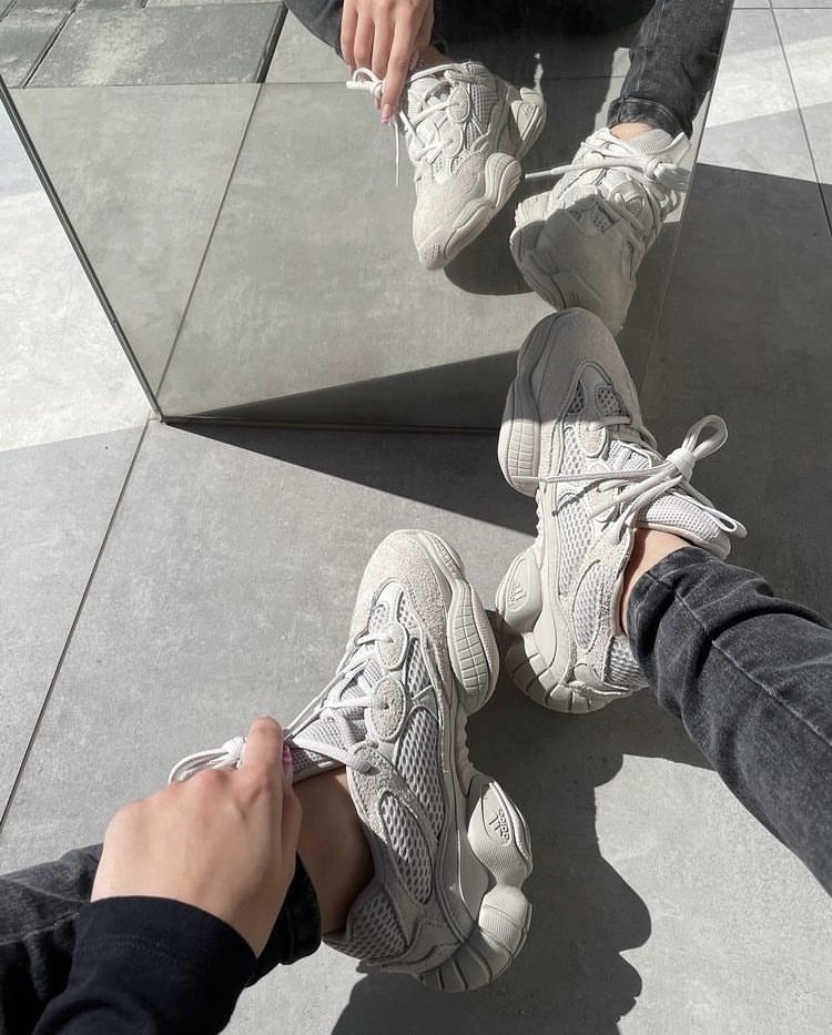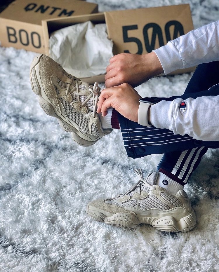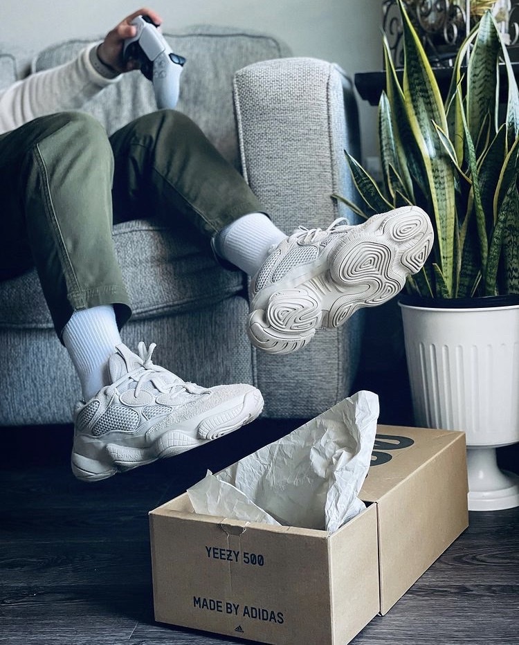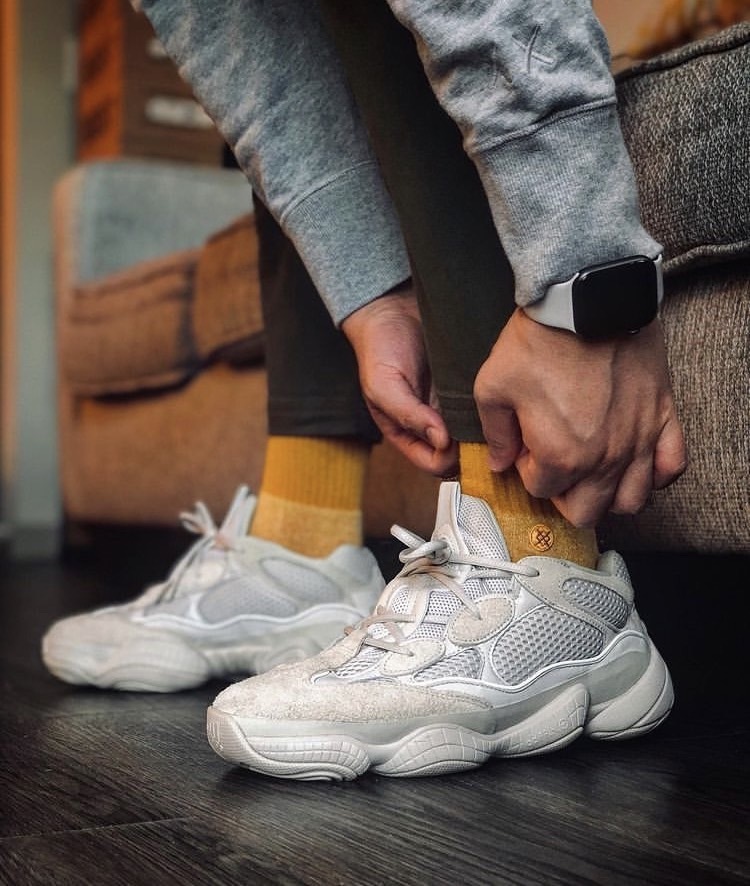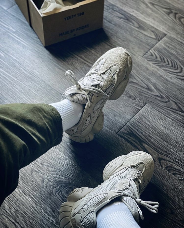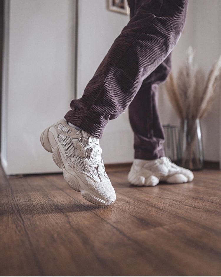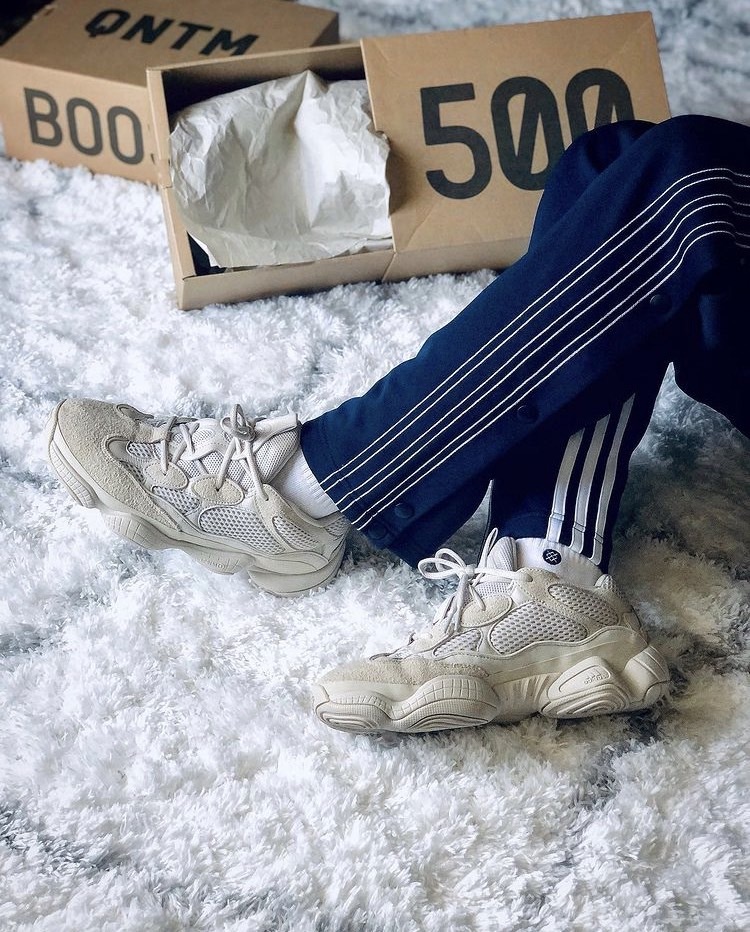 YEEZY 500 人氣配色「Blush 」可說是該鞋型中最具標誌性的設計,運用一身 YEEZY 擅用的經典米白色調來詮釋麂皮、皮革結合透氣網料構成的複雜鞋身結構,搭配厚實的 adiPRENE 大底外型,至今仍是不少鞋迷的愛用鞋款。