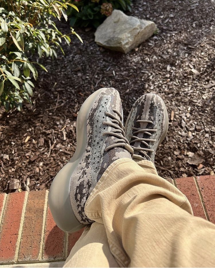 YEEZY 這次同時帶來兩款 YEEZY BOOST 380 配色,「Pyrite」使用明亮的灰白色調,而「Stone SALT」則是深大地色系、微透暖調的紫紅棕色,兩者皆透過不同顏色深淺的針織面料製造斑駁的數碼迷彩效果;鞋底部分,前者為半透明中底搭配乳白色外底,後者中外底同樣為融入鞋體棕色的半透明材質,除顏色上差異,皆全腳掌採用 BOOST? 緩震系統,打造渾厚外型。