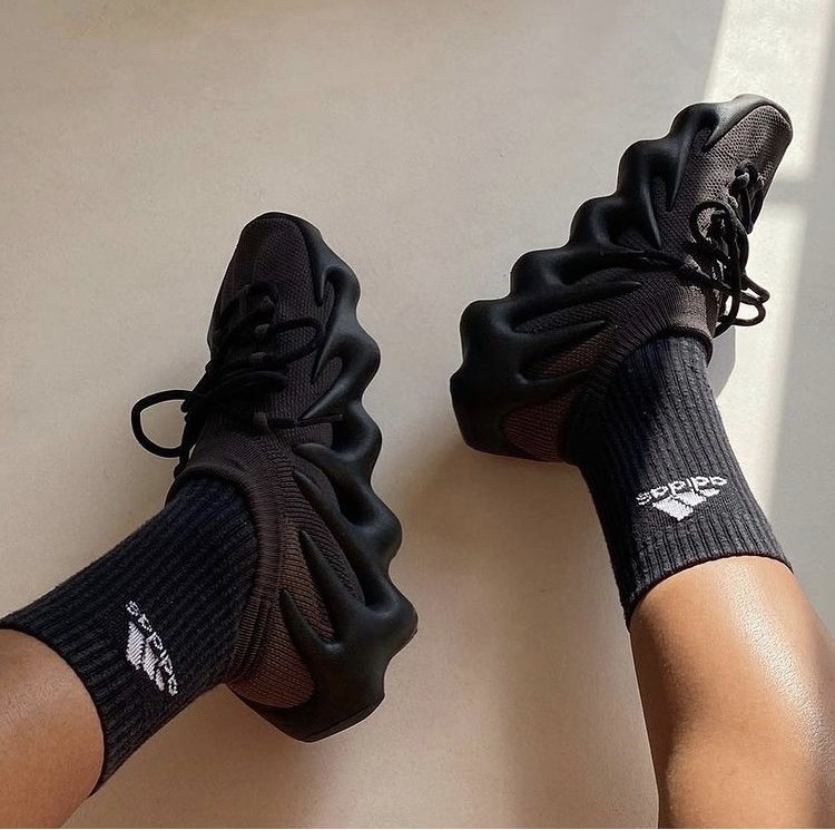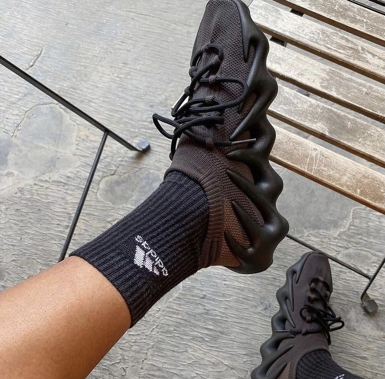 有別以往的 YEEZY 鞋款,YEEZY 450 具備最為突出的前衛特質,一體成型的 Primeknit 編織鞋面搭配包覆性的襪套設計,提供絕佳的穿著體驗。加入偌大搶眼的 EVA 鋸齒外底,將鞋面進行爪式包覆,從側面角度觀察能發現該大底有如山稜線的排列曲線,使得 YEEZY 450 有著莫名的火山氣息。