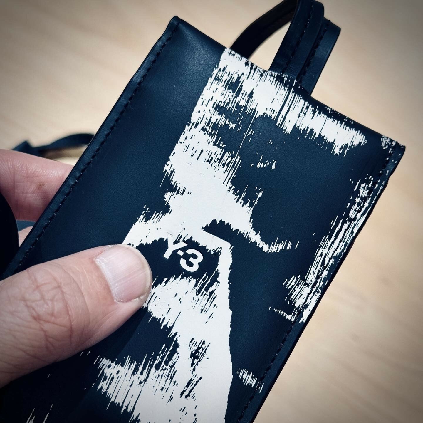 外側設有另一個卡槽。正面印有 Y-3 標誌,內側印有 Yohji Yamamoto 的簽名標誌。