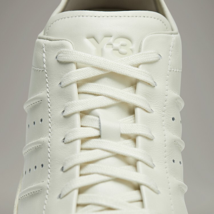 標誌性的貝殼鞋頭也採用皮革製成,側面添加了山本耀司 (Yohji Yamamoto) 姓名徽標,增添了亮點。